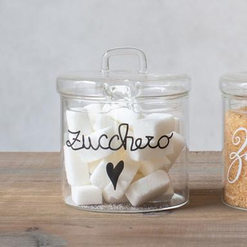 Zuccheriera da tavola in vetro borosilicato, disponibile in 3 fantasie.